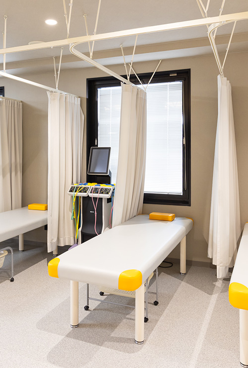 リハビリテーションと骨粗鬆症の治療に注力しており、この二つを当院の柱として位置づけています。リハビリについては、手術後の回復支援はもちろん、手術を行わずに改善を目指すケースにも積極的に取り組んでおり、医師の診断の下で理学療法士が一人ひとりに合ったリハビリを提供しています。当院には若い患者様も多く、スポーツ障害や肩・首・腰の痛みなど、幅広い症状のリハビリに対応が可能です。漫然と続けるだけではない「治すリハビリテーション」をコンセプトに、解剖学的な知見なども踏まえた筋力強化や歩行訓練などで根本的な改善を図っています。