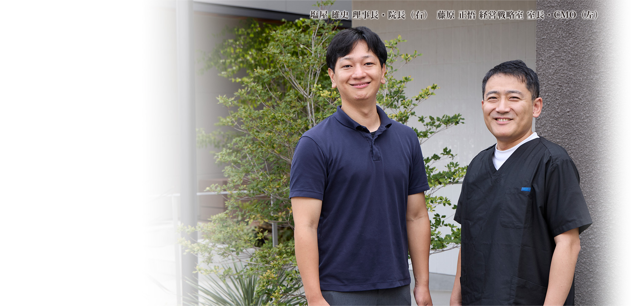 さいたま市中央区、JR埼京線与野本町駅から徒歩3分の「医療法人社団メディーノ しおや消化器内科クリニック」は、『総合病院の内科外来をそのまま地域のクリニックに』というコンセプトを掲げる。CTをはじめとする医療検査機器を整備し、各分野の医師を招くことで、診断から治療までワンストップかつスピーディな提供が可能に。また健康診断にも力をいれ、「要精査」の段階でも積極的な受診を勧奨。働き盛りの患者も末永く健康で充実した生活を送れるよう、細やかなサポートを提供している。理事長・院長である塩屋雄史先生と経営戦略室室長・CMOの藤原正悟さんに、同院の健診サービスの特徴や法人としての展望について伺った。(取材日 2025年9月18日)
