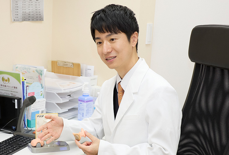 この点、当院は診療にあたる医師全員が日本甲状腺学会甲状腺専門医であり、都内に30件弱しかない「日本甲状腺学会認定専門医施設」の一つです。甲状腺治療の経験を積んだ私と副院長である妻が常勤し、必ずどちらかが外来を担当しています。豊富な知見・エビデンスに基づいた診療を行うのはもちろん、「どんなに些細な不調でも、紹介状なしで気兼ねなく相談できる場所であること」をスローガンに掲げ、「もしかしたら甲状腺の疾患なのでは」という段階から受診できる体制を整備しています。そしてどの曜日・時間帯でも甲状腺を専門とする医師が直接対応し、患者様お一人お一人の悩みに寄り添うことができるのが、当院の大きな特徴です。