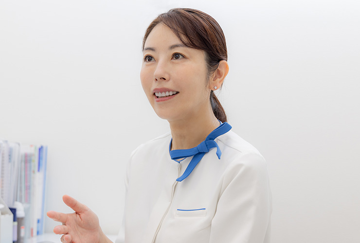 ニキビ治療もニキビ跡治療も、患者様の肌の状態やご希望に寄り添いながら、無理なく続けられる治療を一緒に考えていく方針です。「保険診療の範囲で」というご希望であればその中でできることを、「なるべく早くきれいになりたい」という方には、基礎化粧品からデバイスまで、さまざまな選択肢を提案します。なによりも患者様の立場になることを大切に、一人ひとりに効果的な方法を見極めつつ治療を進めていきたいですね。