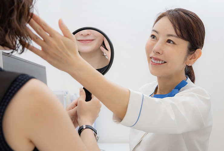 また、ビタミンCの入った基礎化粧品による皮膚のターンオーバー促進や、代謝を助けるビタミンB2・B6をしっかり摂ることなども大切です。身体の内外から美しい肌を目指していただけるよう、丁寧にお手伝いしています。