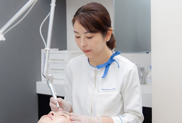 例えばシミや肝斑が気になる方には、微細なレーザーでメラニンを分解するピコトーニングを、ニキビ跡や毛穴対策がご希望であれば、真皮層に直接エネルギーを与えるポテンツァがお勧めです。その他に、真皮層に働きかけて幅広い肌の悩みに対応するジェネシスレーザー、ターンオーバーを促すピーリング、皮膚の再生力を高めるダーマペン4など、約20種類の機器をそろえており、このデバイスの豊富さも当院の特徴といえるでしょう。