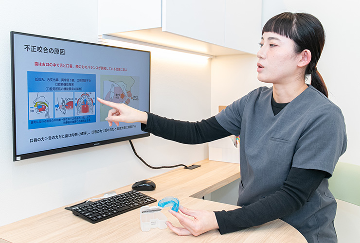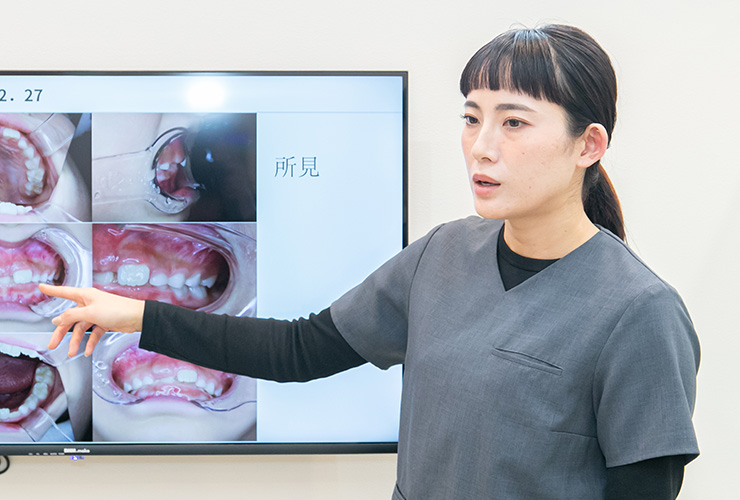 診察中は終始会話をして、雰囲気づくりに気を配っています。お口の中を撮影した写真を見ながら毎回変化を共有し、治療の効果を実感してもらうことも重要ですね。また矯正治療には、保護者の方の協力が欠かせません。特に積極的に関わっていただきたい時期もあるため、保護者の方とのコミュニケーションも大切にしています。